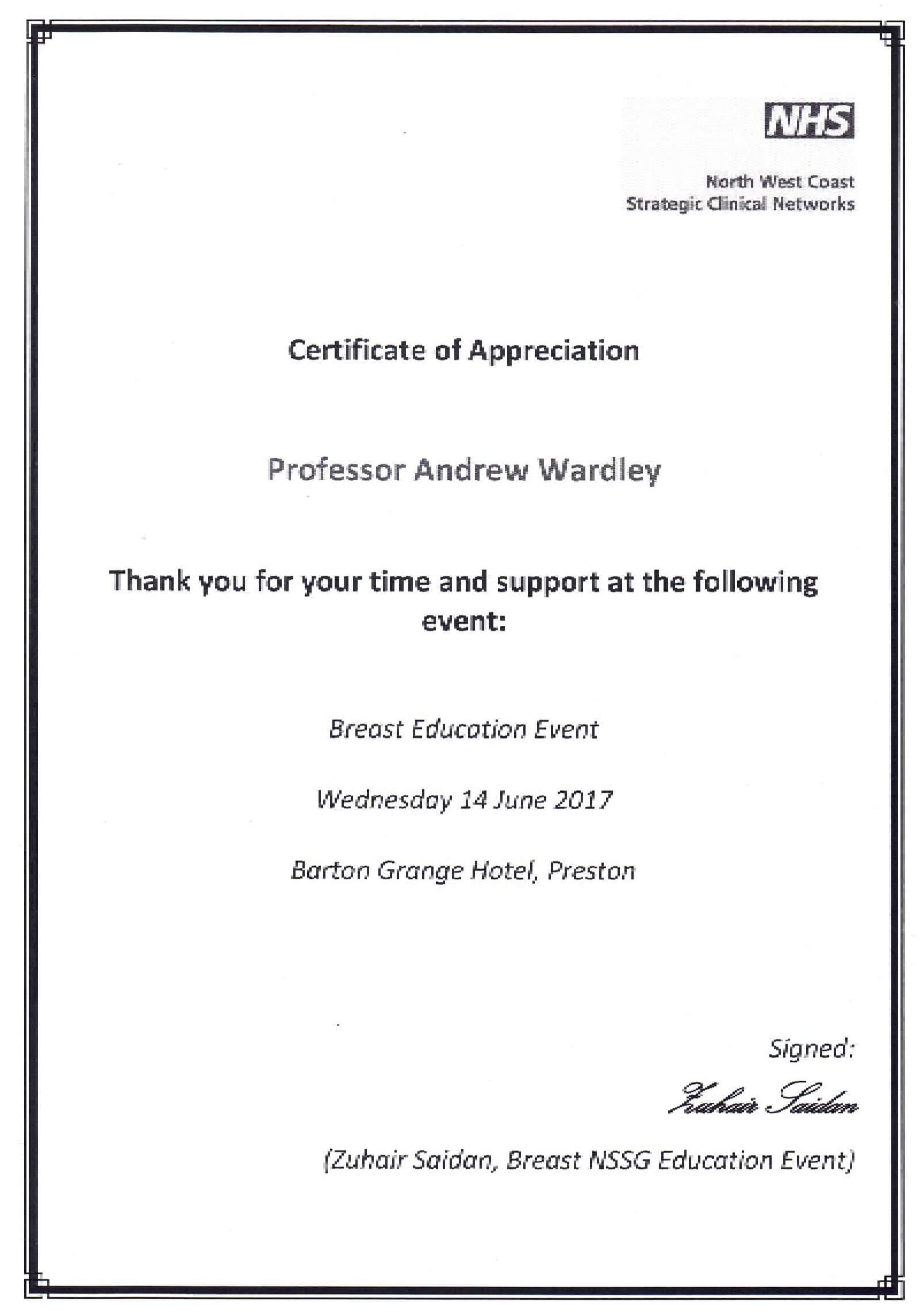 Wardley’s reputation as a breast oncology leader reflected in frequent invitations to present at national and international meetings, including ESMO, the Philippines Medical Oncology Society, Brazilian Cancer Congress, Asia Oncology Forum, North Wales Breast Group, Northern Ireland Breast Group, and the Breast CARE meeting. He serves on the Scientific Advisory Board of Breast Cancer Campaign and reviews for multiple trial groups and journals (Scottish Trials Group, BJC, J. Surg Oncol, Seminars in Oncology, Oncologist, The Breast). Through these roles, he has influenced breast cancer research and clinical practice across the UK and internationally.