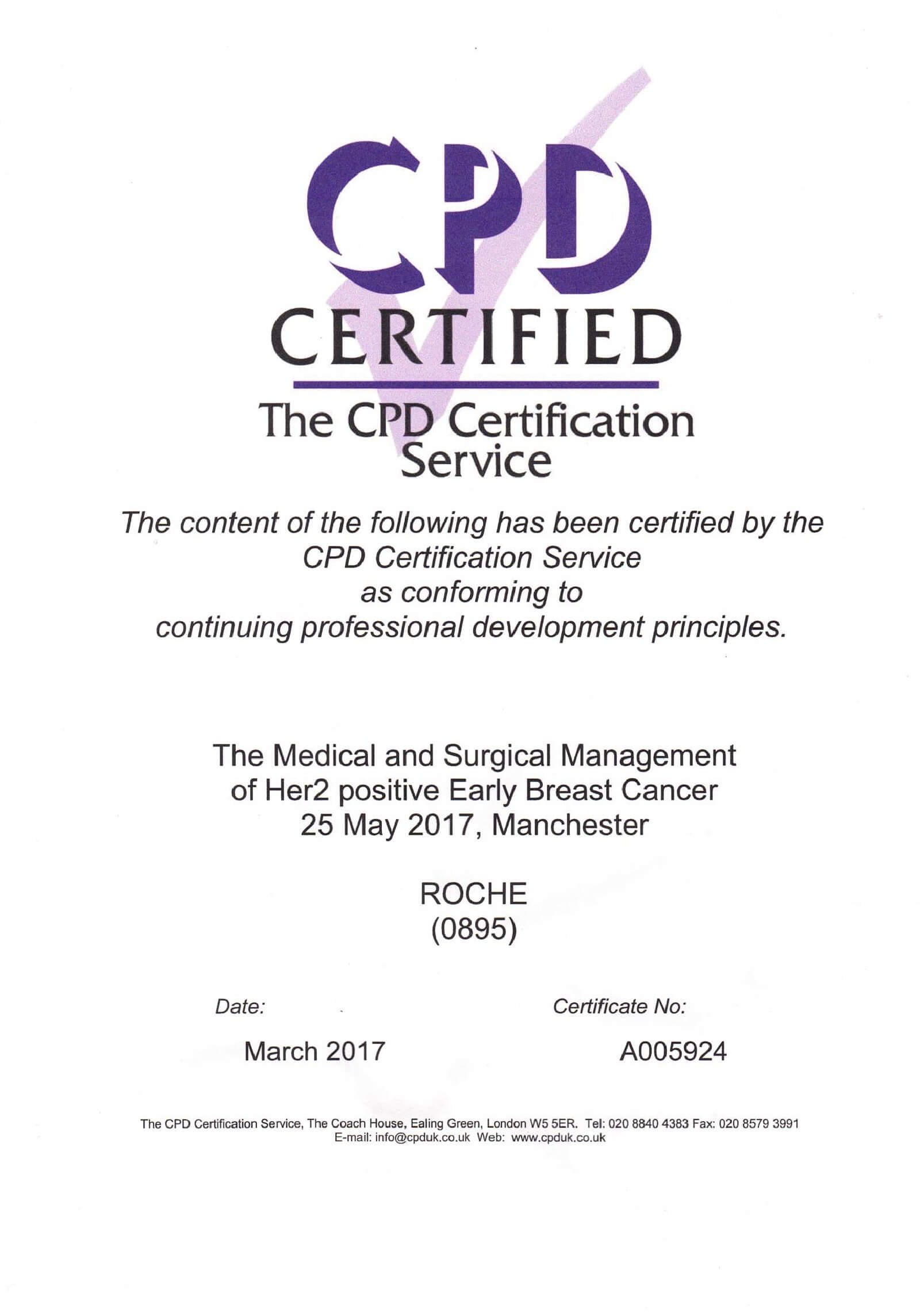 Wardley, together with Professor Earl and Professor Miles, who together conceived the idea of reduced duration of adjuvant trastuzumab, immediately after the seminal presentations at ASCO 2005, with others secured NIHR funding for PERSEPHONE – duration of trastuzumab study with chemotherapy in early breast cancer: six versus twelve months Trial registration: EudraCT 2006-007018-39; ISRCTN 52968807; NCT00712140.