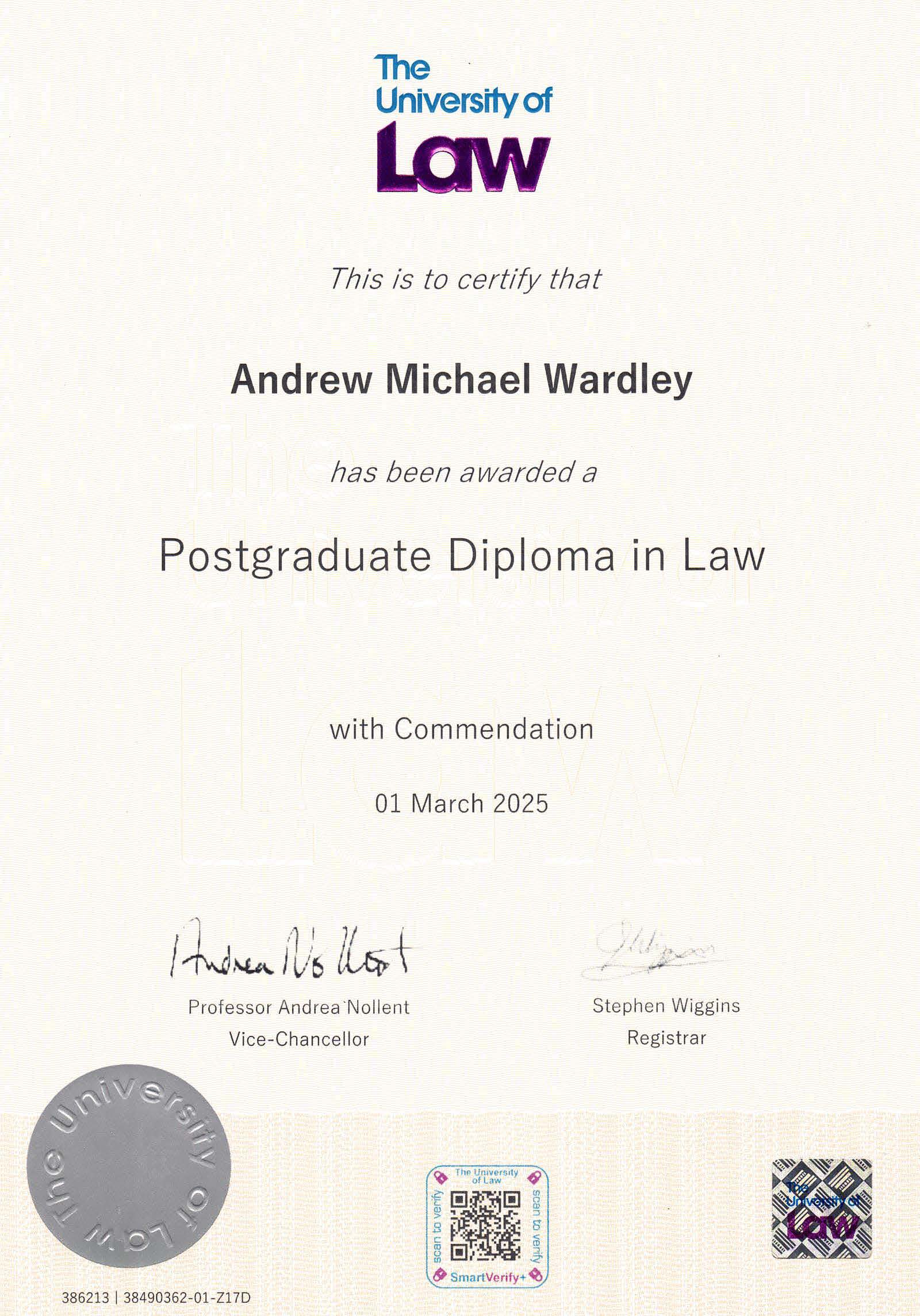 Building on his extensive medico-legal and policy experience, Professor Wardley completed a Postgraduate Diploma in Law (with Commendation) and is now completing the Bar Training Course.